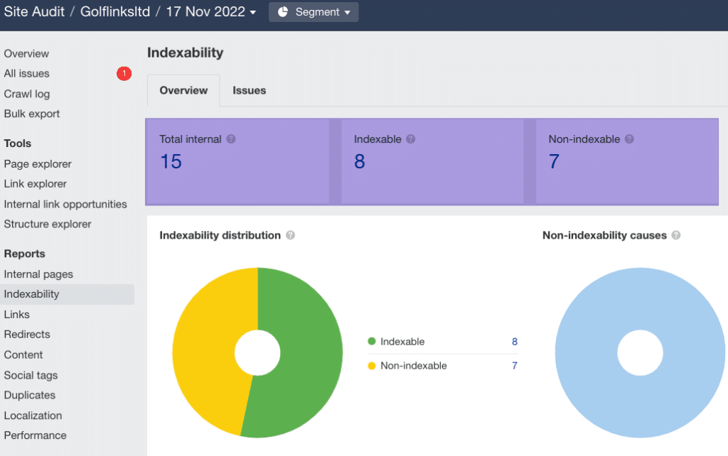 In this example, nearly half the pages aren’t indexed; if a page isn’t indexed, it will never rank or get traffic.