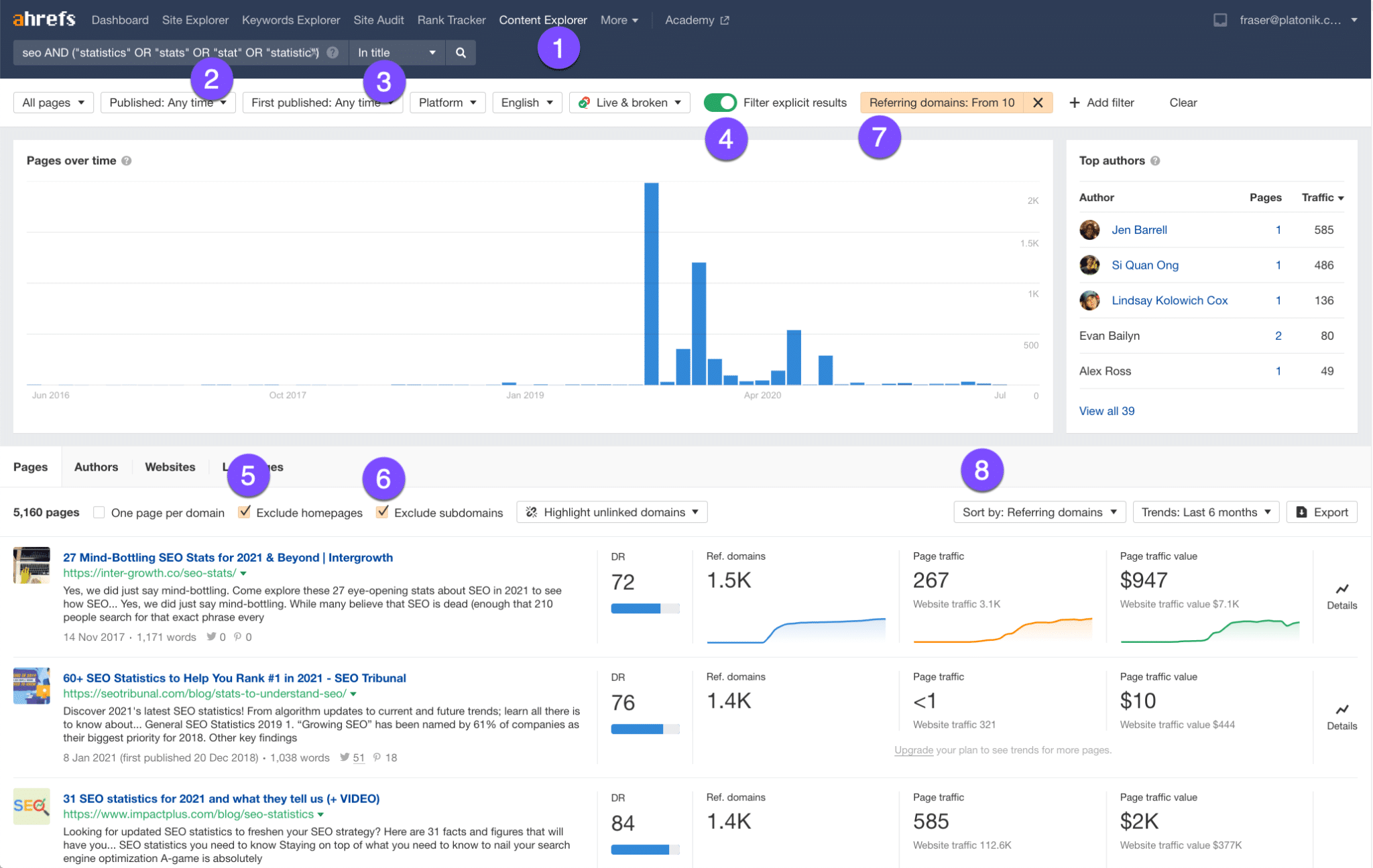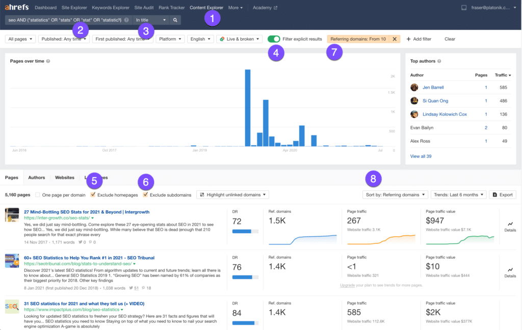 If you want to find popular statistical topics that people link to, use Ahrefs or content explorer.
