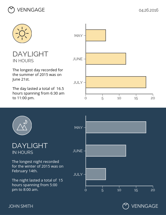 Perhaps in your version you don’t even need the daylight icons and text and simply make the bar charts the full width of the infographic.