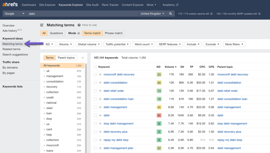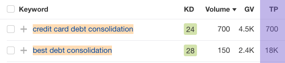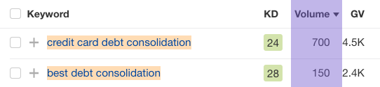 That’s because “best debt consolidation” is part of a topic called “debt consolidation loan”, which has more traffic potential than “credit card debt consolidation.”