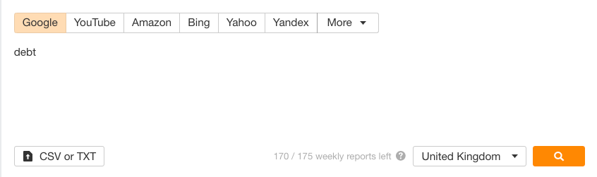 Enter a one or two-word keyword that describes your product, service or industry into the keywords explorer search box.