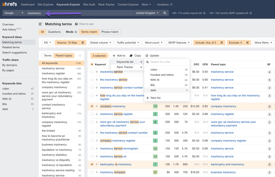Step 1: Enter a seed keyword into Ahrefs keywords explorer