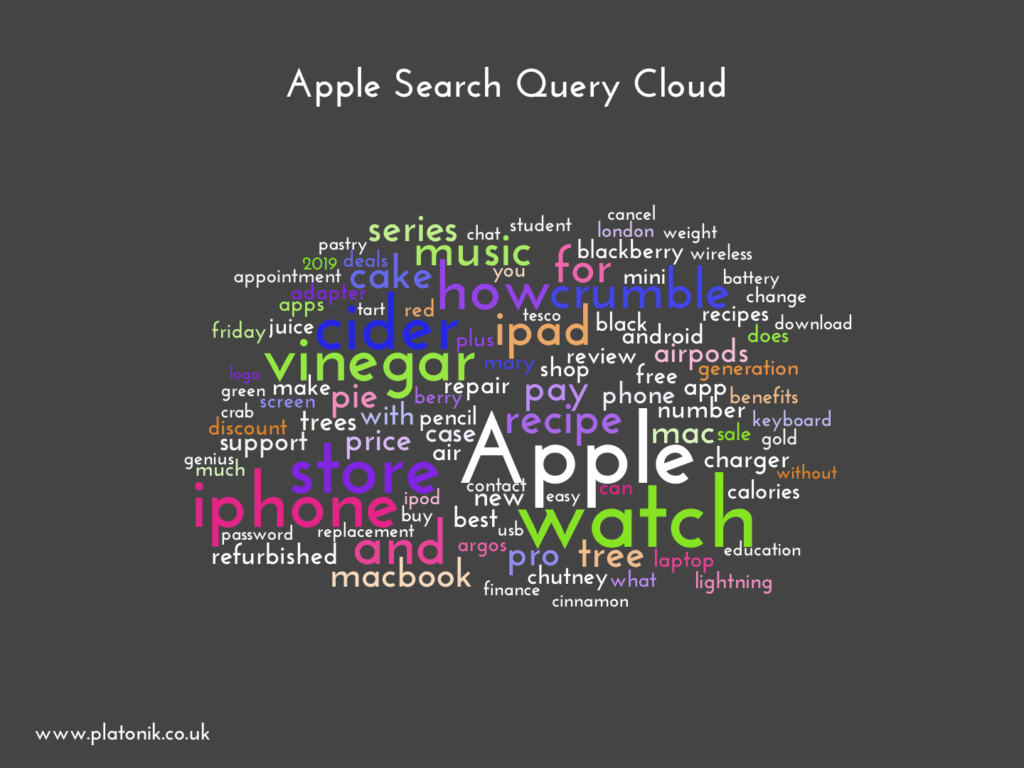 You can see the 17 search categories I analysed that form the 85,000 total search queries at the foot of the graph.