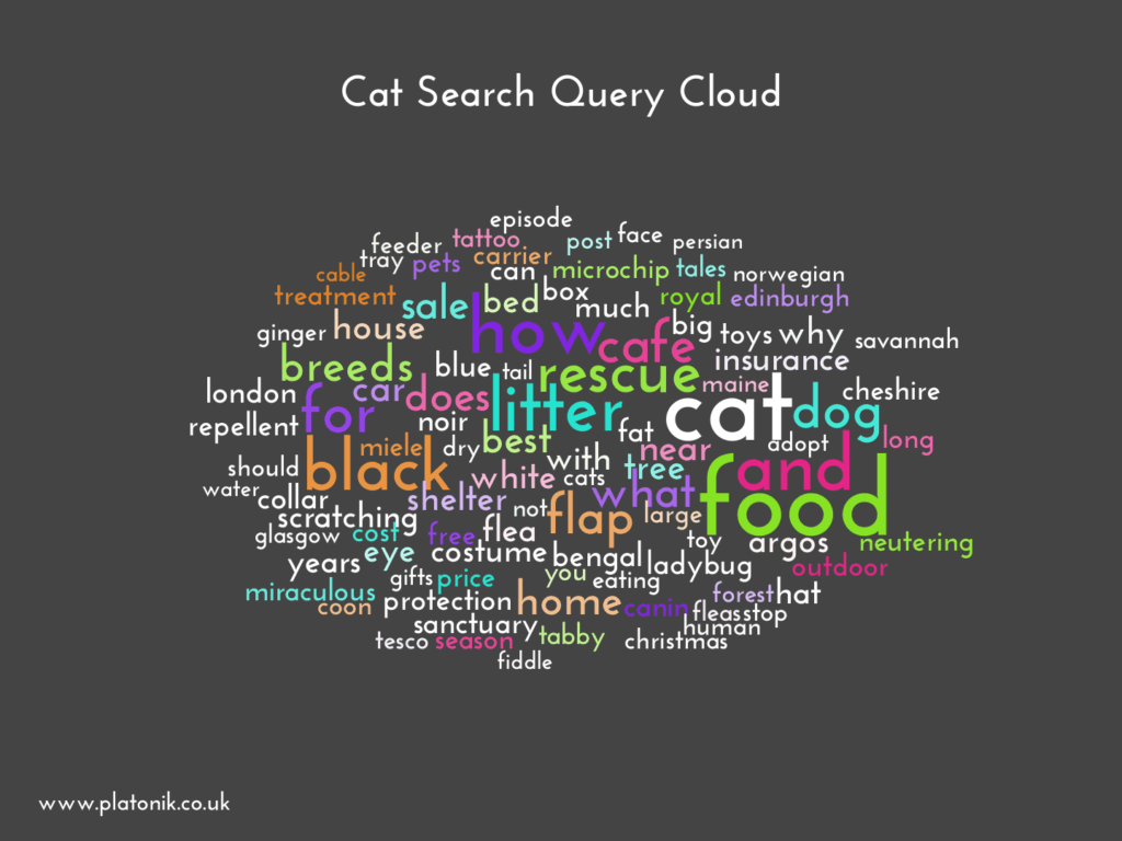 When you examine the top UK informational search queries containing “cat” you see what is most prominent.
