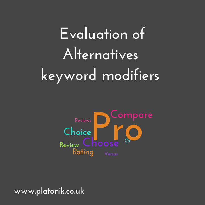 • eg: compare, alternative