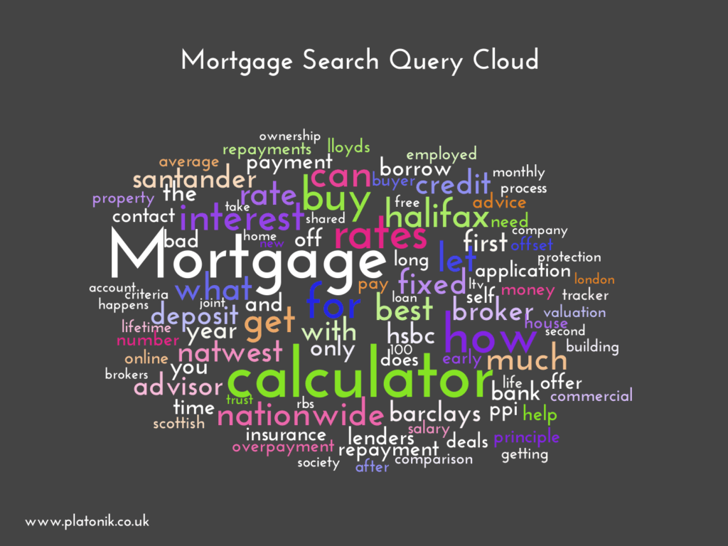 When you examine the top UK informational search queries containing “mortgage”, you see that the word calculator is extremely prominent.