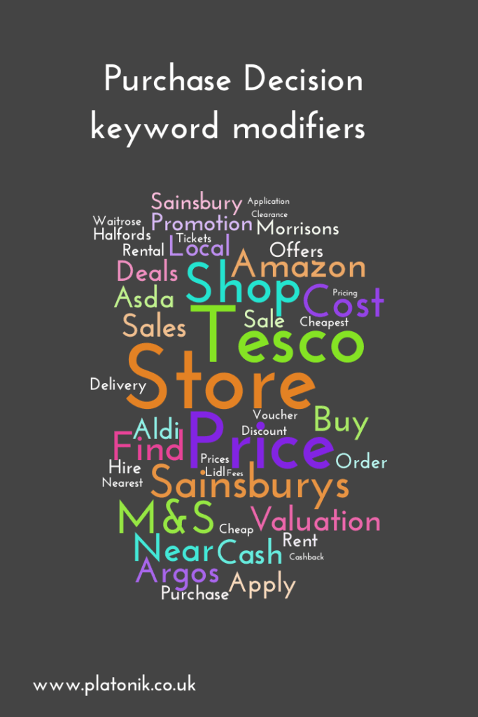 Then a list of keyword modifiers was chosen and assigned to each stage of the buying process funnel.