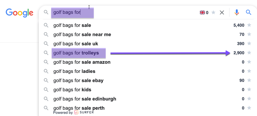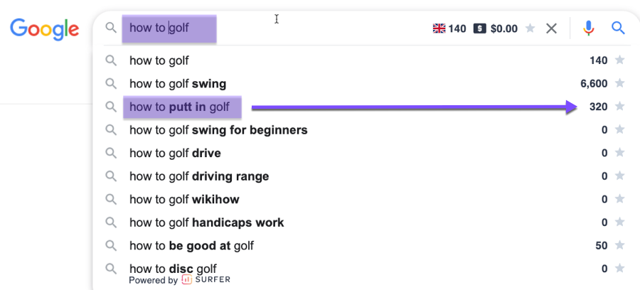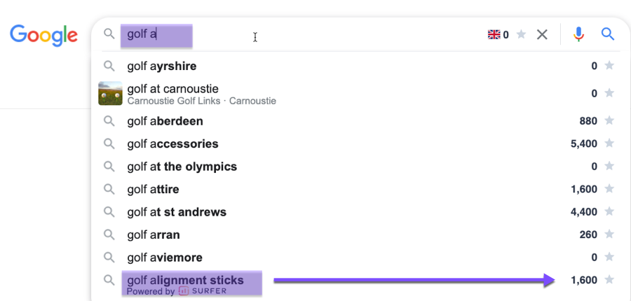 Now Google your keyword, hit the spacebar, and enter the letter “a,”