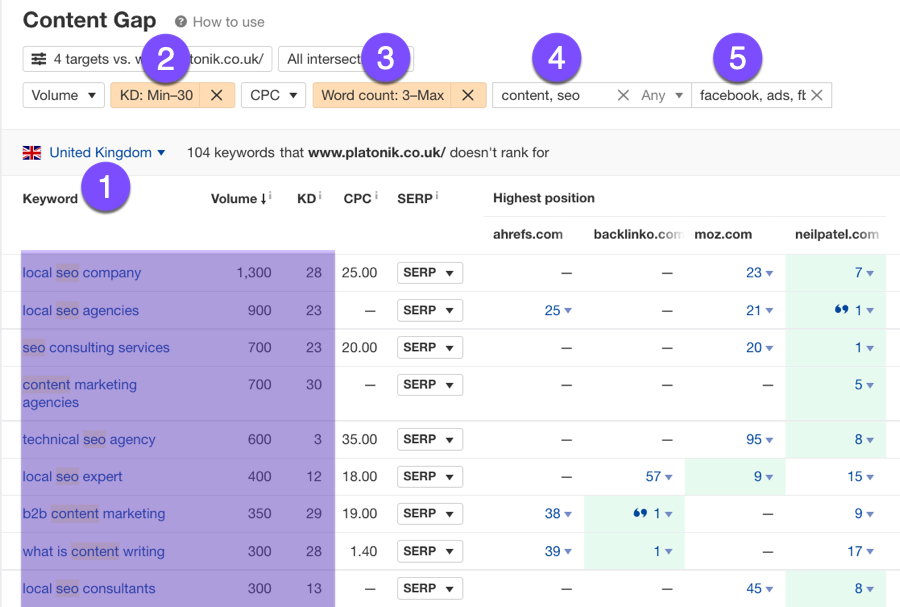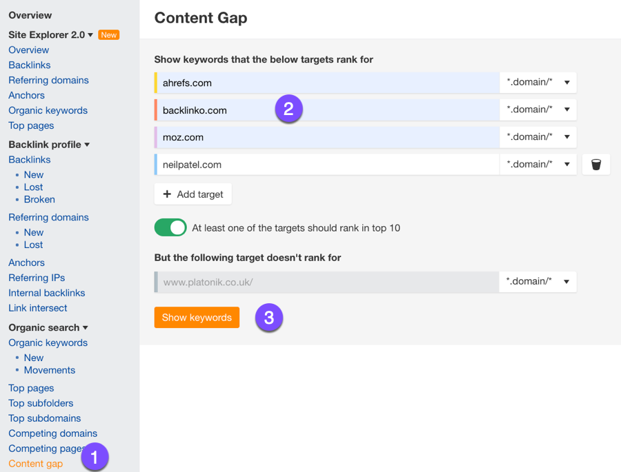 Here’s how to use the content gap tool within Ahrefs to identify long-tail keyword ideas.