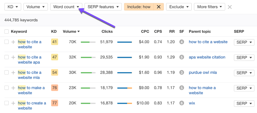 Since Ahrefs has such a colossal keyword database, this tactic can uncover hundreds of thousands of topical long-tail keywords.