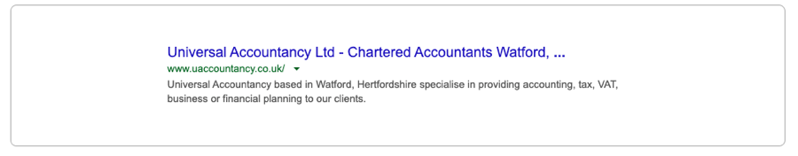 This accountant is based in Watford, and you can see how they’ve titled their home page.