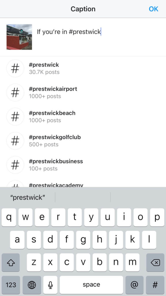 First, find the hashtags of local towns; type something into a post followed by the hashtag and town name.