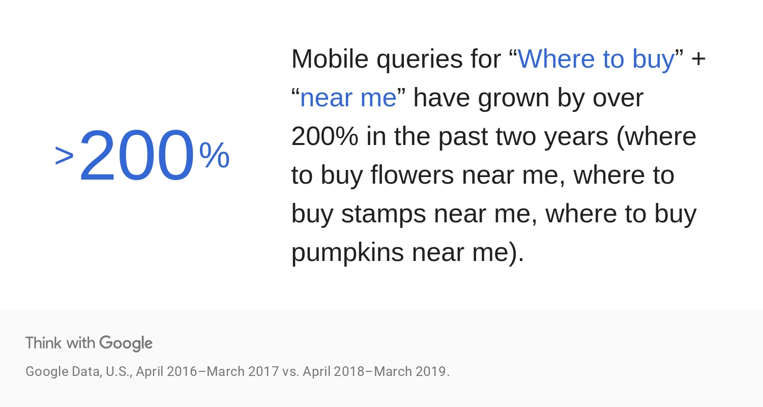 200% – mobile queries for “where to buy” + “near me” have grown over 200% in the past 2 years.