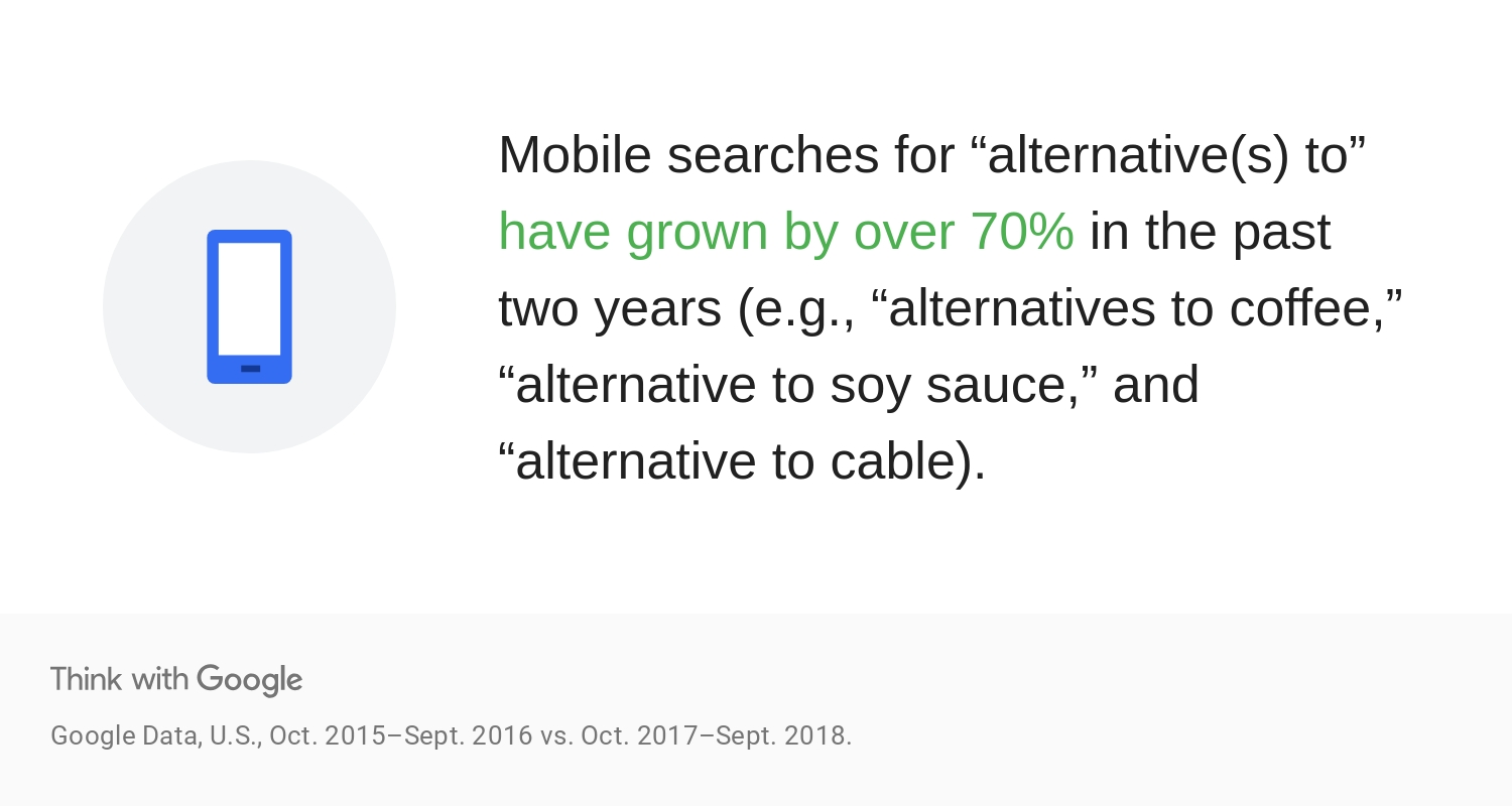 70% – Mobile searches for “alternative(s) to” have grown by over 70% in the past two years.