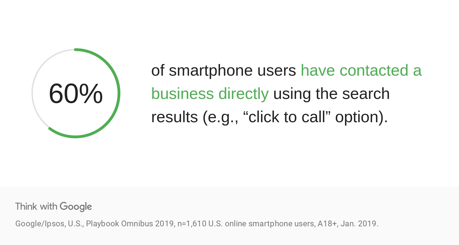 60% of mobile phone users have contacted a business directly using the search results (e.g., “click to call” option).