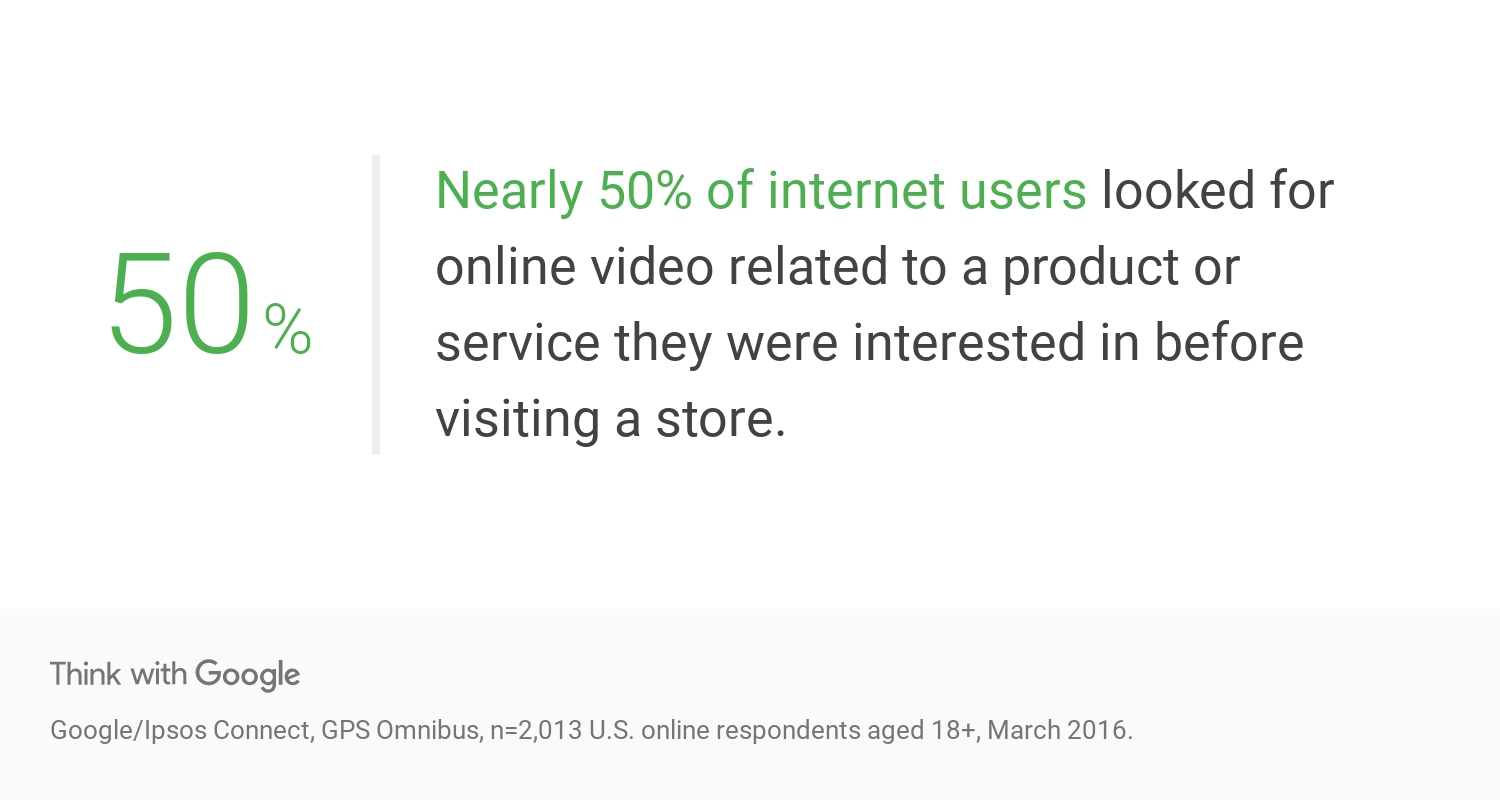 50% of users looked for online videos about a product or service they were interested in before visiting a store.