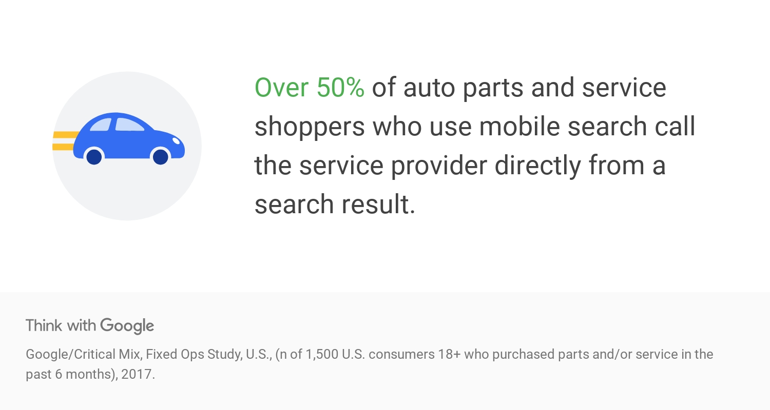 50% – over 50% of auto parts and service shoppers who use mobile search call the service provider directly from a search result.