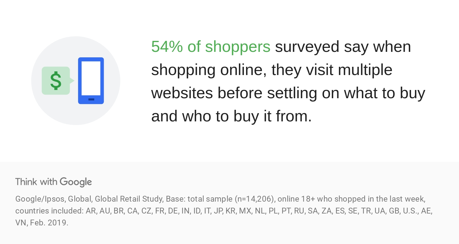 54% of shoppers say when shopping online; they visit multiple websites before deciding what to buy and who to buy from.