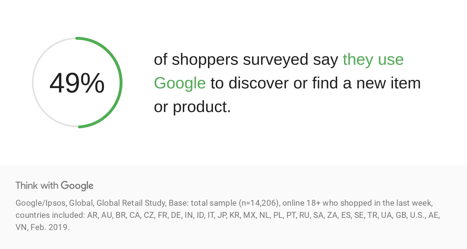 49% of shoppers use Google to discover or find a new product.