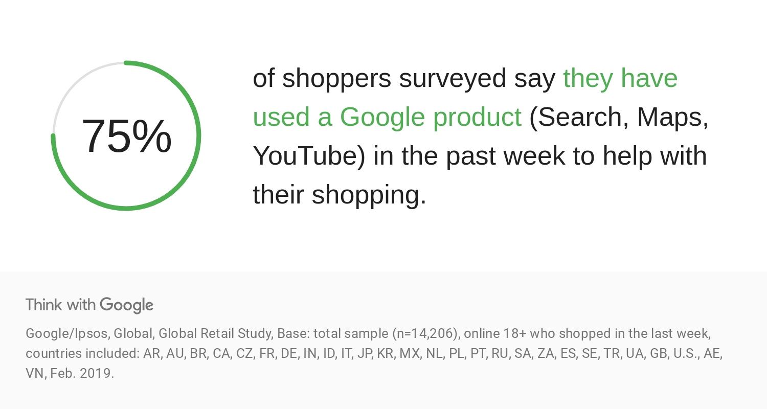 75% of shoppers have used search, maps or YouTube in the past week to help with their shopping.