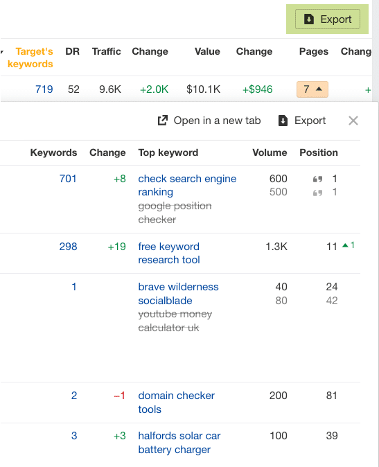 If I wanted to do a more detailed analysis, I would export the list of all 20 competitors listed and drop them into a spreadsheet.