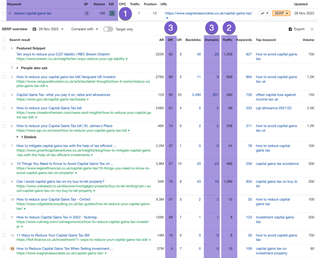 - Check DR and Referring Domains to top pages to see if you can outrank some of them.