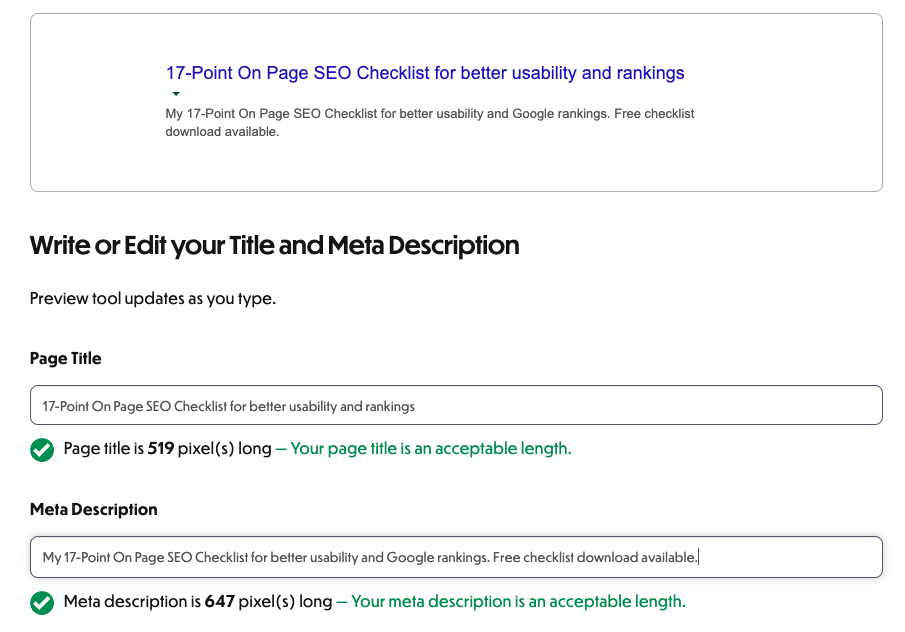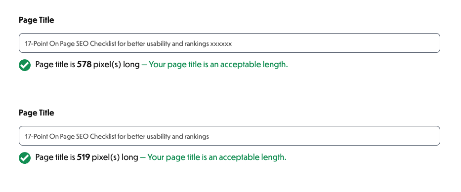I write my page title out in a tool called Test Page Title & Meta Description Visibility.