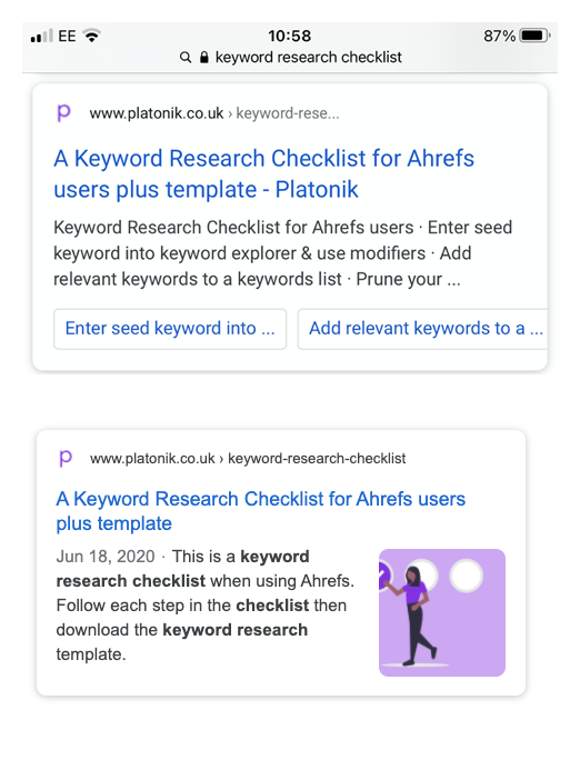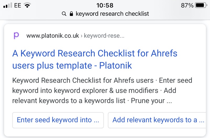 Here’s an example of a page title on a mobile phone where I currently rank at position 4.