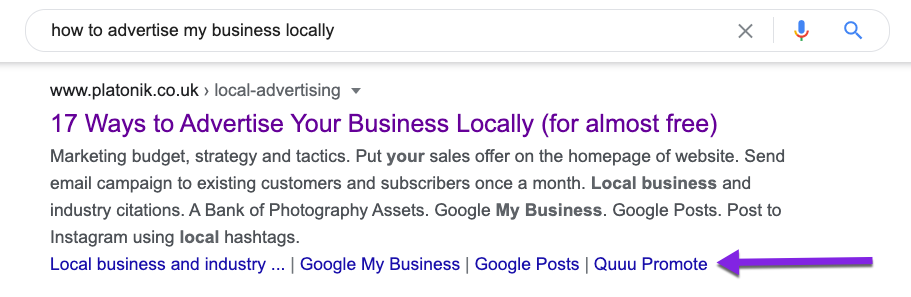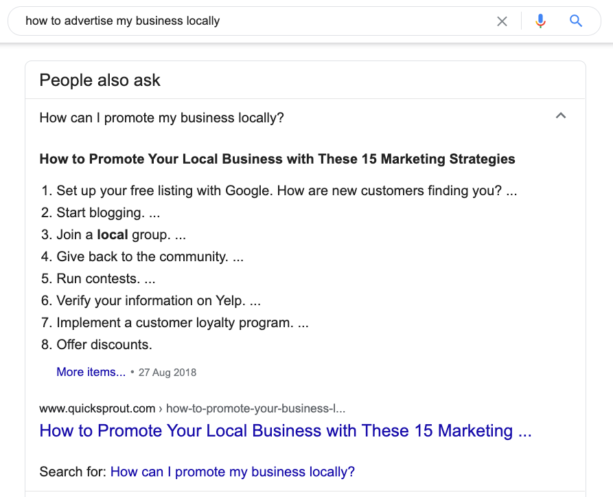 I discovered people searching for “how to advertise locally”, and the top page was a few years old.