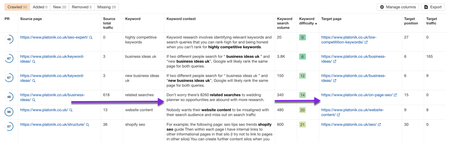 Using the Ahrefs link opportunities feature will help you identify internal link opportunities and could help boost the organic rankings of particular pages and keywords.