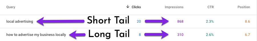 So if “local advertising” were the short tail keyword, what’s the long tail keyword ?
