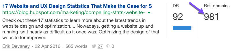 This page gets 601 unique referring domains to their page about web design statistics.